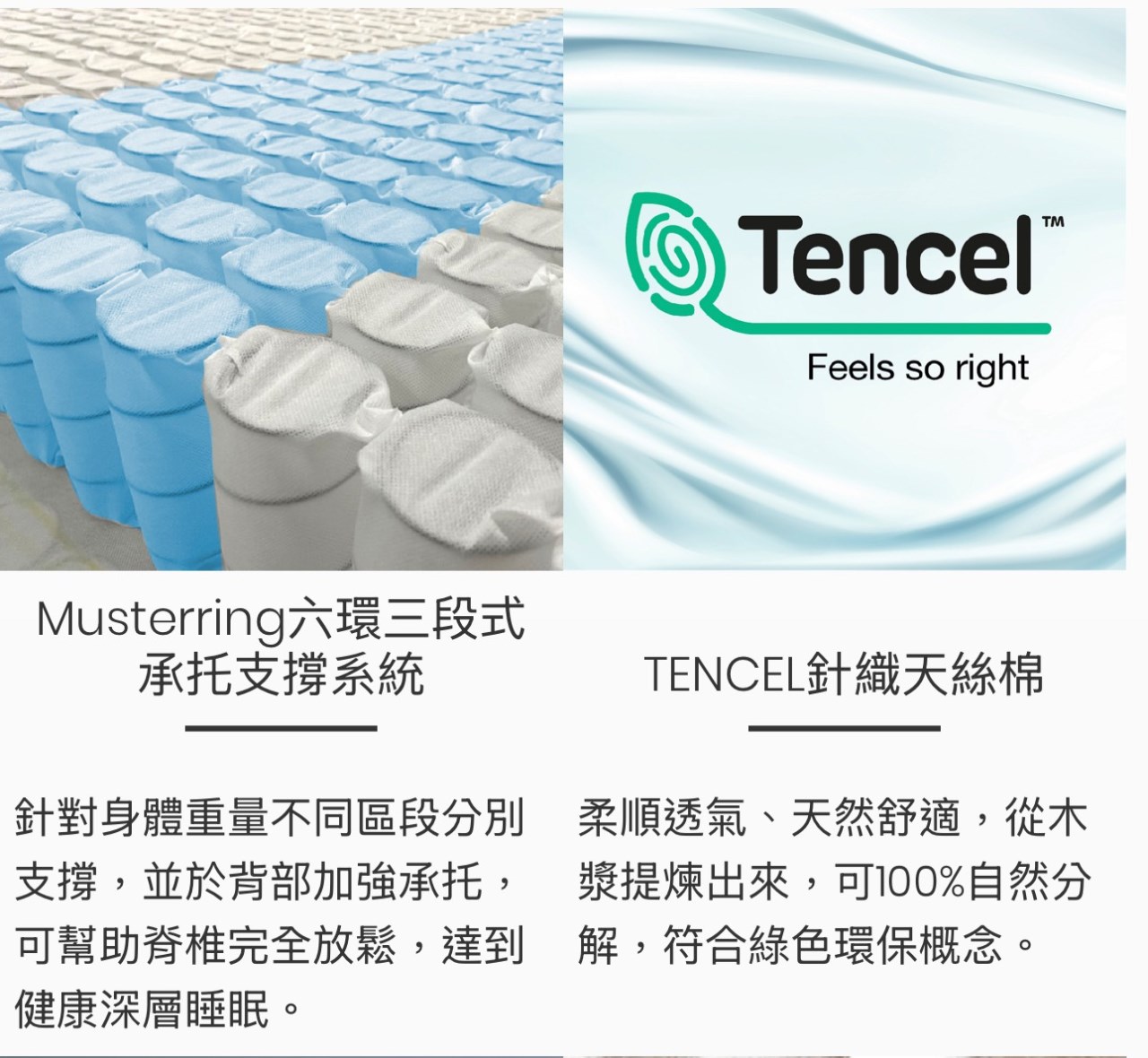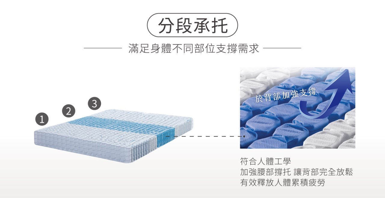 採用2.4mm/2.0mm三段式獨立筒設計