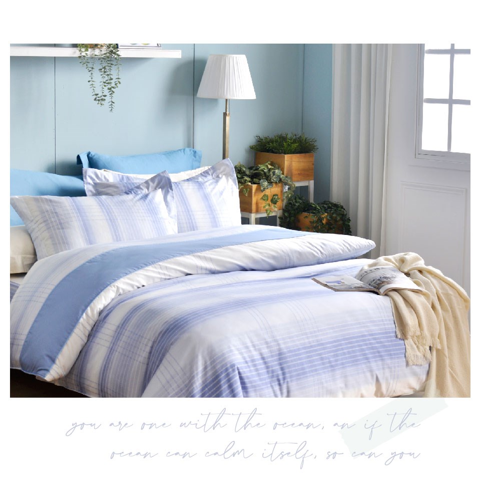 四件式兩用被床包組:鋪棉兩用被X1件、床包X1件、薄枕套X2個