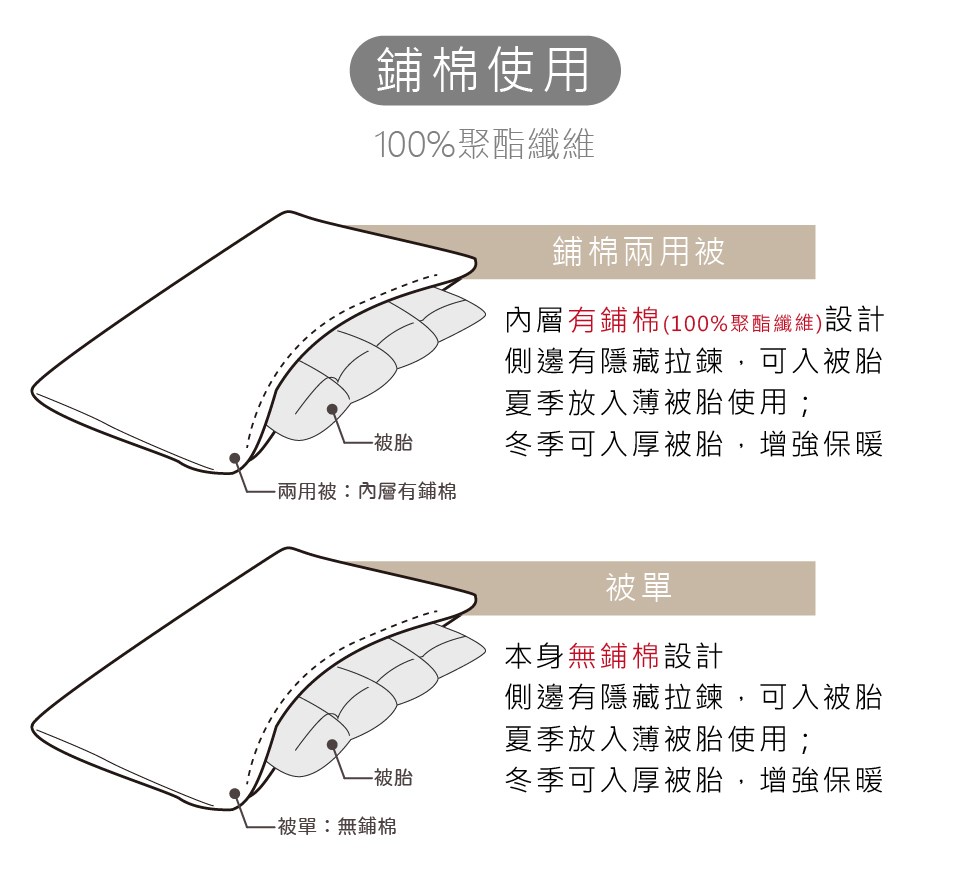 內容件數:鋪棉兩用被X1件、床包X1件、薄枕套X2個