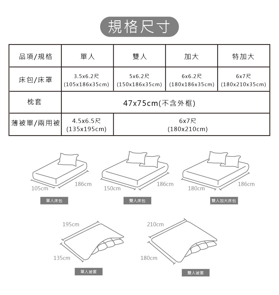 溫馨提醒:單人 3.5*6.2尺兩用被床包組(搭配的兩用被 尺寸為:4.5*6.5尺 )